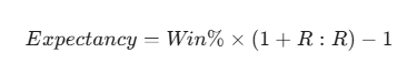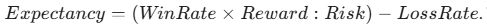 Ví dụ, nếu hệ thống của bạn có tỷ lệ thắng 40% và tỷ lệ R:R là 1:2, thì Expectancy là: